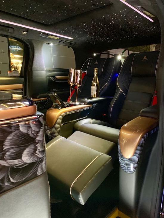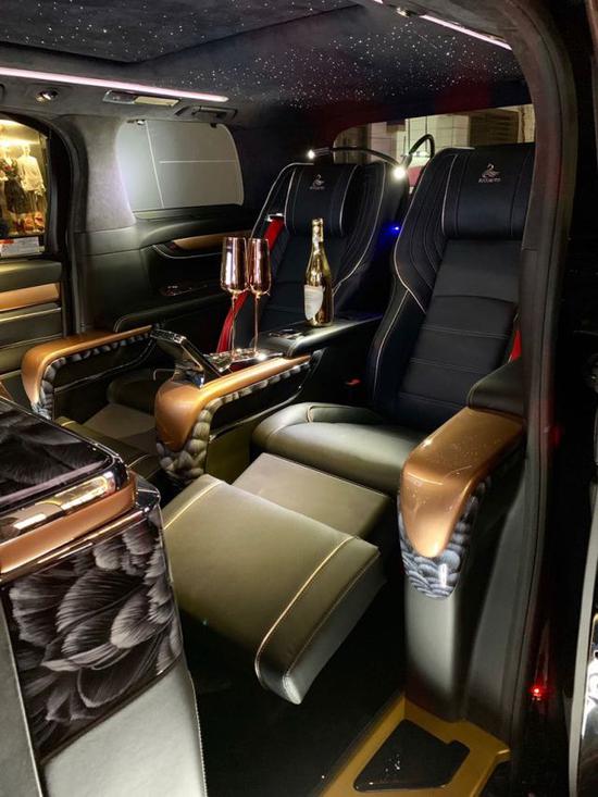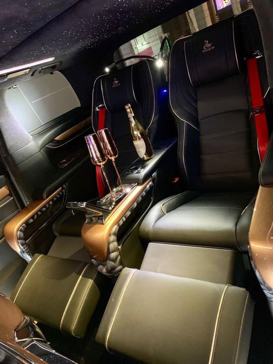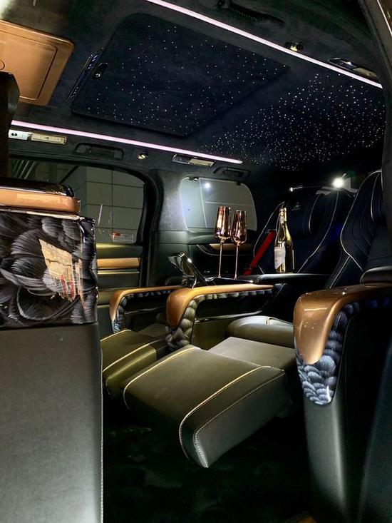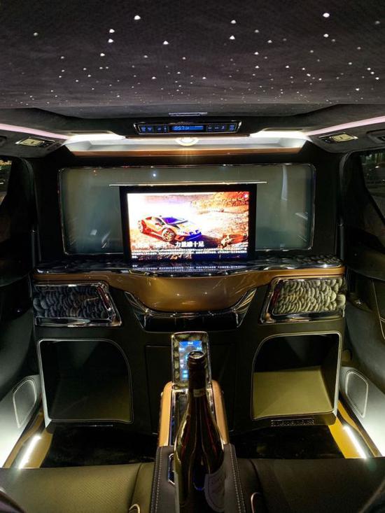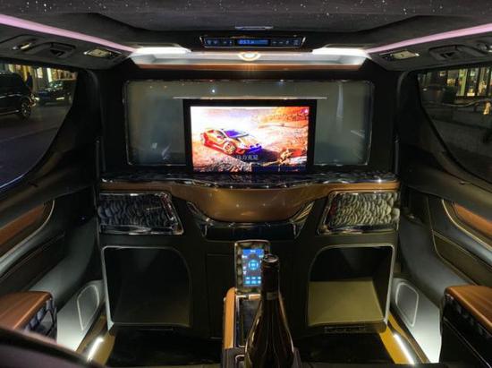 进入车内我们可以看到,这款丰田埃尔法蒙娜丽莎版采用了前后舱隔断的空间设计,前面我们也说过车内部采用了4座的设计,所以能过匀出不少空间来做一做隔断的文章。