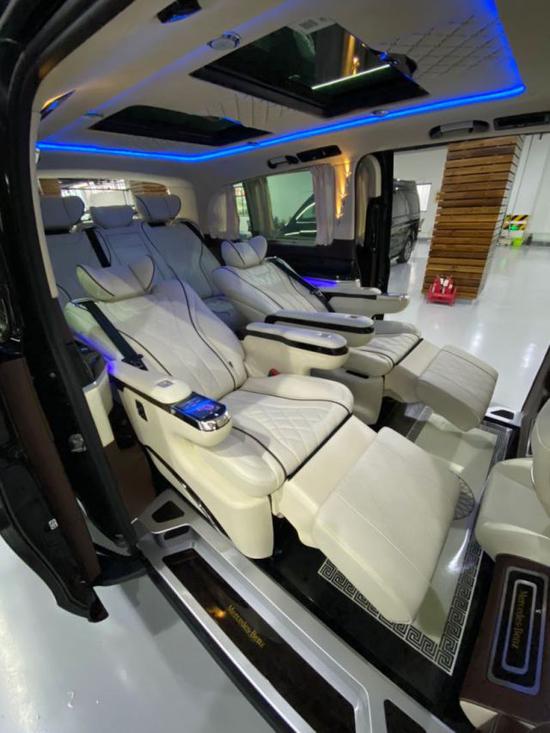 奔驰威霆 (配置|询价)改装方案有很多种(大致分三种风格:1商务办公接待;2私人娱乐;3私人豪华房车,这三种风格又可以互相叠加、互相交错,最简单的商务风格都很多改装项目:地毯、木地板、真皮座椅、窗帘、大屏显示器、车顶/车侧蒙皮、九宫格顶灯、冰箱、办公桌、等等。智能化特点:航空座椅的调节(靠背、腰托、腿托、脚托、360°旋转、按摩、加热)由触摸屏控制,只为您的舒适和便捷。后排娱乐、办公桌、大屏显示器、放倒试沙发床,由此您可想象奔驰威霆的舒适度、便捷度和豪华程度,也给您在旅途中提供了更多乐趣。提到奔驰,绝大多数人脑海中出现的第一个词肯定是“高价的豪华车”,但奔驰威霆商务车的出现,让人们对奔驰有所改观。在追求高端、豪华的道路上,融入了更多的实用元素,“无须过度奢华,但绝对不甘平庸”就完美的诠释了奔驰威霆。