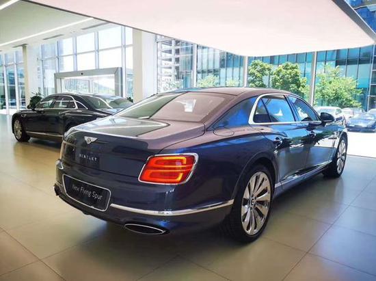 20款宾利飞驰从后往前看,看似平缓的腰线,其实从后门开始向外突出,营造的大多都是力量感,S尾部的扩散器设计非常含蓄,并没有破坏车尾的整体感,扩散器可让气流更快通过底盘,高速行车提供更多下压力。