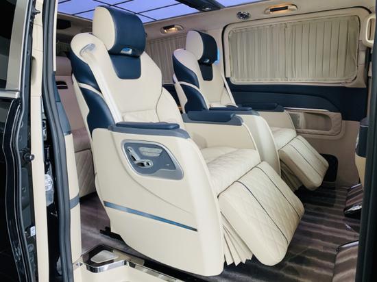 奔驰V (配置|询价)S680迈巴赫商务车升级款迈巴赫VS980选择定制升级7座商务车,无疑不是被它更为个性化的定制风格和与原车相比更为舒适的配置所吸引。我们进入驾驶舱是就感受到了这样豪华氛围,真皮的材质,菱形的缝线,真皮打孔方向盘握感相当舒适。Nappa真皮多功能方向盘,支持多角度调节,操纵杆流畅舒适更安全;典雅复古风岑木中控面板。