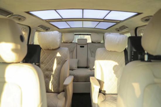 进入到V250改装迈巴赫VS680的驾驶舱,采用奔驰现款轿车的设计风格,豪华之感十分浓郁。整个车舱全部采用软性皮质包裹,中控的胡桃木覆盖以及周边镀铬的律动的装饰条,轻而易举的将奢华感受烘托出来。奔驰V (配置|询价)250改装迈巴赫VS680进口商务车依旧为2.0T汽油发动机与9速手自一体变速箱搭配,具有高效的操控性能,低能量消耗以及超乎寻常的舒适感,为驾驶者与乘用者提供难忘的驾乘体验。