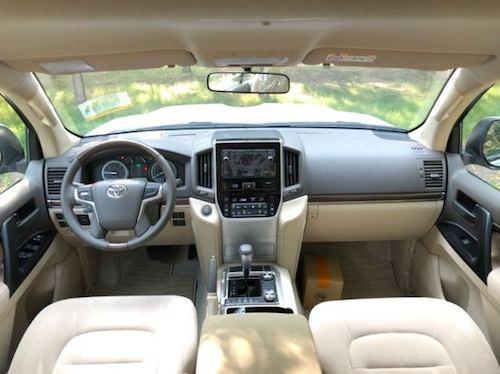 中东版-2020款酷路泽柴油4500-GXR 高性能版 (扭矩增大 动力提升 百公里油耗仅为5L) 配置:遥控启动 前小杠 6速手自动变速箱,8气囊,7座,天窗,冰箱,LED氙气大灯,大灯清洗,踏板,镀铬外观,桃木内饰,前后电眼,蓝牙电话,桃木方向盘,巡航定速,蠕行模式,差速锁,2档起步模式,一键启动,刺绣真皮限量座椅,3分区空调,柴油加热系统,拖钩,18铝合金轮毂。 特价-白棕 、黑棕