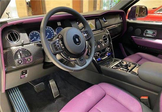 库里南的内饰遵循了劳斯莱斯一贯的设计风格,造型经典复古但不失科技感,大量实木饰板的采用,提升了内饰的档次感。而大面积真皮包裹的设计,则成功的营造出奢华舒适的内饰氛围。仪表盘的设计较为古朴,内部指针清晰可见,外圈还配备有劳斯莱斯珠宝般的装饰环。方向盘沿用了经典的三辐式造型,但是整体设计更加小巧、厚实,并且内部包裹有可加热的柔软材质。