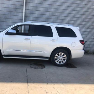 在外观上,无论你怎么看,红杉都是一头野兽,它的所有元素几乎都是与“大”有关的。前脸迎接你的是黑色大格栅,中间带有醒目的TOYOTA字样,LED大灯在两边装饰,2条简单的线条勾勒出醒目的日间行车灯。来到侧面,“大”仍然在延续,前门和后门都非常大,这使得人们进入任何座椅都很轻松,18英寸的轮毂与坦途和陆巡的规格相同,但是巨大的车身使得车轮看起来有点小巧,还好厚实的米其林LTX AT2轮胎弥补了视觉效果。
