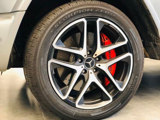 奔驰G63全新的直瀑式进气格栅可以说是家族最新的设计风格,也是在新车外观造型上与奔驰系列产品差异化最明显的地方。此外,G63最大的轮圈尺寸,进一步提升了它外观造型的彪悍程度。展车不仅采用了全新的车身涂装,还搭配了红色的轮圈装饰,更加个性。
