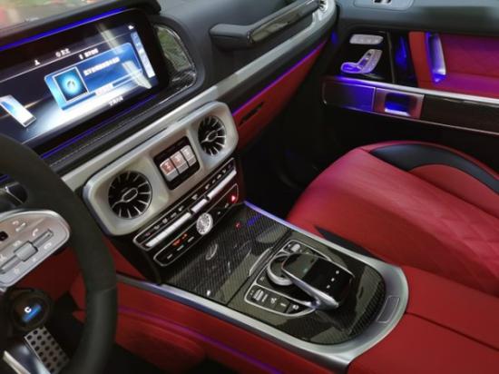 20款奔驰G63AMG内饰方面,新G63保留了新G500的整体设计,除配色差异外,新车还换装了全新造型的底式AMG运动方向盘,其两侧配以打孔皮质包裹,下部镀铬装饰的造型也与新G 500明显不同,看上去十分战斗。此外,全液晶仪表盘+中控大屏的双12.3英寸屏幕设计在新车上也没有缺席,营造出了浓郁的科技感。
