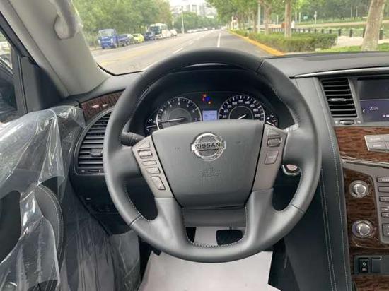 19款途乐4.0 SE中东版图片详解内饰方面:日产途乐采用了豪华轿车惯用的四幅风向盘设计,粗细比较合手再加上真皮加实木的用料,手握感觉极佳。另外方向盘功能强大,集成了音响、空调控制及蓝牙车载免提系统,使驾驶者在行车中更为安全,做到手不离方向盘。同时方向盘加热功能,令驾驶者双手在寒冷的冬季也能得到最佳的呵护。