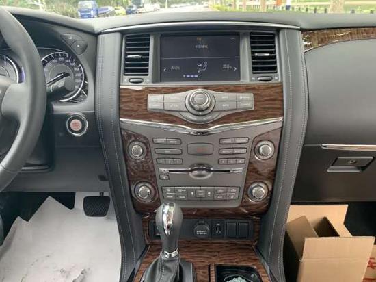 19款日产途乐Y62中东4.0内饰兼具了舒适性和功能性。仍然为三排座车型,内饰材质也更加的考究。使用 了皮革,铝以及木纹样条作为点缀日产尼桑途乐给人留下的最深刻印象莫过于庞大的车身,车内在保留了这款SUV一贯硬派作风的基础上 ,在提升豪华性方面也做了很大努力。全景式倒车影像应该是日产汽车引以为豪的技术,作为日产家 族的顶级车型,这项配置自然是少不了的。