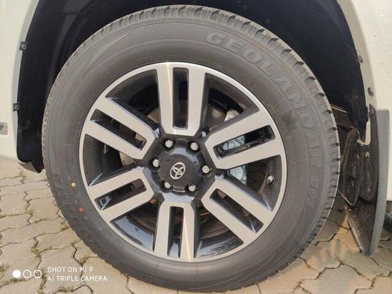 进口丰田超霸张开大嘴般的进气格栅让超霸非常有力量感,格栅下还有一个粗壮的车身同色下包围护板,整体看上去非常有野性。大灯与格栅紧紧相连,大灯看上去非常凶狠霸气,不愧是车如其名“超霸”。20英寸的大轮毂,配备的是锻造式的轮毂,非常的坚实,碰到石头几乎是没有问题的,匹配的是越野式的轮胎,可以适应各种路况,可以提供很好的摩擦力。