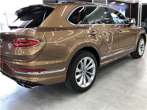 21款宾利添越,前脸最具辨识度的设计当属四圆形车灯和大尺寸镀铬中网,很好的将其独特的身份和气质给彰显了出来。从前大灯贯穿至前轮拱的线条充满肌肉感,增加了车身侧面的运动气息。倾斜式后窗使得其具有了更加优雅的造型,而前后腰线的独特设计又赋予了它更强的力量感。