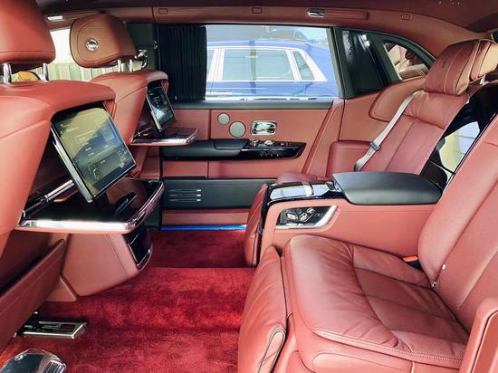 电动折叠板和后排影院系统被巧妙的隐藏在前排座椅的椅背后,只需轻触按钮,便可以自如收放桌板和影院系统,带来完美的剧院体验。后排中央固定扶手做了重点优化,其中国可容纳带有威士忌酒具的酒柜、香槟酒具和冷藏箱,方便乘客畅快交谈,后排座椅角度可以任意调节,这一设计让客户无需转头便可视线自如交流。整个车厢内饰全部以最精美的高档材料装饰,使车内极具触感。