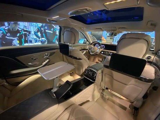 20款奔驰迈巴赫S650的内饰变化不大,整体造型布局维持原样,关键在于选材和用料方面更偏向于科技感奢华打造,越来越像豪华游艇。中控台大面积采用世界各地的高档皮革和实木覆盖,这块木头可能来自于某个悬崖上的同一棵树,皮革可能是多少道精细手工工艺打造。新车依旧搭载的是12.3英寸大屏幕,显示效果超群,但是它不支持触控。中间这个时钟是iwc牌子的,这一点与普通版车型上的“无名氏”钟相比立刻从细节上体现出了档次的不同。
