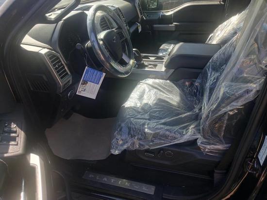 20款福特F150车内配备标准独特的皮革和布艺装饰的座椅,驾驶员侧的电动十向调节。这些座椅同时具备记忆功能。中央控制区搭配了触控式显示屏,其下方则是多媒体控制区及空调面板,采用旋钮+物理按键的组合。中控功能区域可分为三个小控制区,最上端为音响控制及导航控制,中间为收音机调节控制,最低端为空调及座椅加热控制。