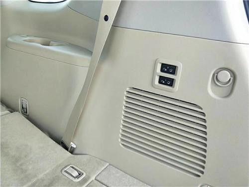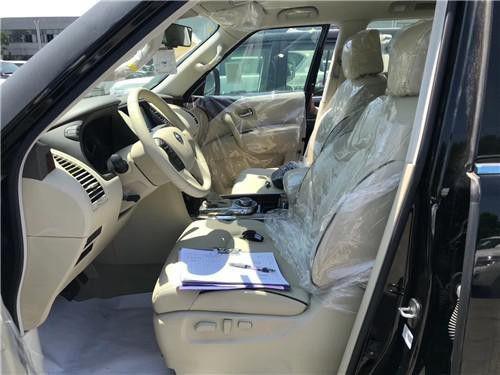 19款尼桑途乐OPT版乘坐空间十分充裕,前排横向空间和纵向空间都非常充裕,座椅宽大厚实,低配采用织物材质,高配车型为真皮包裹,途乐Y62给中间座位同样配有头枕头,并在扶手箱内设有两个杯架。前排支持腰部支撑调节,新车第二排空间相当充裕,此外还可以放倒,Y62全系中央扶手箱设有冰箱功能,夏季在也不用担心没有冷饮了。