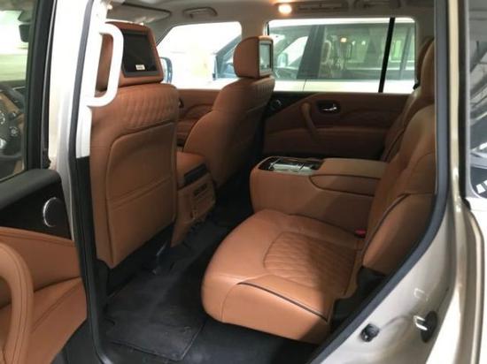 配置:QX80配置 5.6排量v8 398马力 7速 全时四驱 雪地模式 多功能方向盘 一键启动 无钥匙进入 真皮内饰 真皮座椅 主驾座椅记忆 主副8项电动座椅 腰部支撑 触摸大屏 自动空调 钟表 座椅加热 天窗 自动防炫目后视镜 桃木内饰 电动尾门 冰箱 后排自动空调 后娱 第三排座椅电动收放 前后电眼8个 led大灯 led日行灯 自动大灯 22轮 环影 胎压 8气囊 定速巡航 行李架 方向盘电动调节 bose音响
