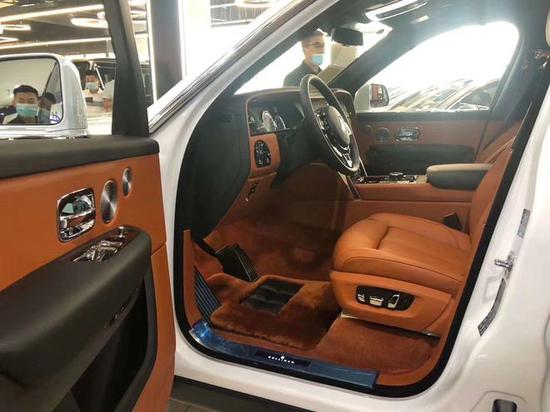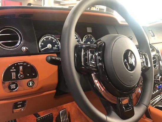 20款劳斯莱斯库里南内饰大面积皮革和实木饰板搭配的中控台,辅以银色装饰条搭配,游艇式方向盘造型同样适用皮革与木饰板相搭配。