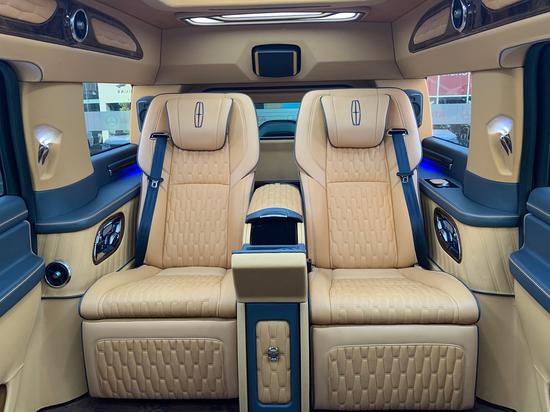19款林肯领袖一号四座商务越野车,后排的空间和配置所震撼,高清晰液晶电视。侧面2个7寸液晶显示屏,桃木内饰/酒吧/冰桶,可升降分隔屏,中间电动私密升降隔屏等一系列奢华配置不禁让人眼花缭乱,不禁惊呼:原来这才是奢华。