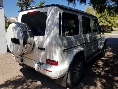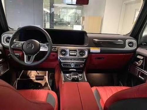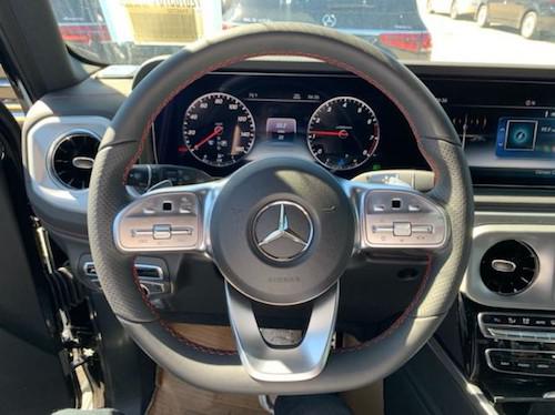 20款美规奔驰G550 自适应悬挂 大屏 轮毂锁 ①G manufaktur定制内饰包:[G manufaktur Nappa菱形座椅,黑色绒面顶(鹿皮顶),Nappa 真皮仪表盘,无框后视镜,动态支撑前排座椅+前排按摩座椅,前排通风座椅,前排座椅快速加热,真皮室内把手,带Nappa皮革边框的丝绒地板垫] ②AMG 暗色(运动)包[AMG Line外观样式,奔驰字样的制动卡钳,AMG脚垫,AMG运动型排气,黑色外观装饰件,黑色奔驰星标] ③金属纤维内饰 ④360环影 ⑤20英寸AMG多辐轮毂 方向盘加热