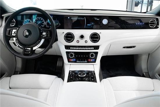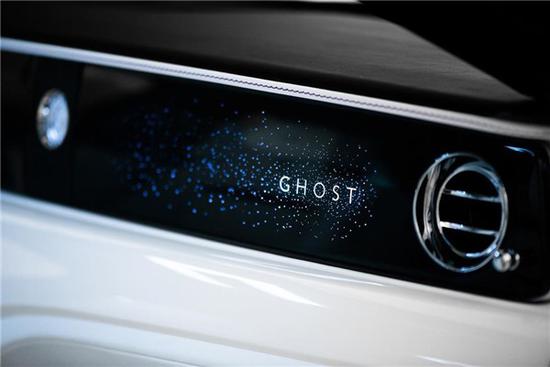 斯莱斯古斯特仪表盘,中控屏与副驾前方星光饰板形成贯穿式设计。副驾驶前方的面板配备了星光面板。当车辆启动时,由850颗“星星”围成的“幽灵”车名面板会一起亮起。搭配“星空顶”,极具梦幻感,给你极致的奢华优雅体验。