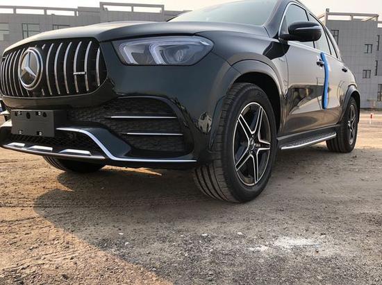 相比前脸,侧面跟普通奔驰GLE (配置|询价)差别就比较小了。从级别上看,这台GLE53是中大型SUV,跟宝马X5一个级别,车长4米95,宽度2米出头,高接近1米8,轴距近3米,个头是足够了。五星状的轮毂非常运动化,原厂标配的是20寸轮,轮胎规格前后都是275/50 R20,自带胎压监测,但没有配置备胎。车门下方带有合金材质的上车踏板,车顶配置了行李架。