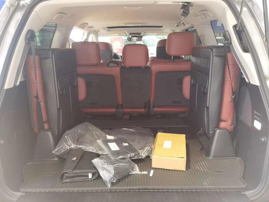 20款雷克萨斯LX (配置|询价)570八座限量超级运动S配置雷达测距、抬头显示、换挡拨片、铝制行李架、限量包(前后大包围、黑色大中网、钢制油门/刹车脚踏板、车门迎宾灯)、S限量花纹脚垫、后包围镀铬、镀铬尾喉、外置拖车钩、138升双油箱、遥控启动、车身防擦条、副驾驶灭火器、流水转向灯、金属漆、Logo地射灯、21轮、冰箱、天窗、智能卡、电眼、环影、后娱、底盘升降、前座椅通风加热(真皮)、导航、多功能桃木真皮方向盘、桃木内饰、航空照明脚踏、LED氙灯、大灯清洗、迎宾灯、四区空调、三排电动、电尾门、ACC自适应巡航、后座椅通风、车道保持、并道辅助、二排遮阳帘、马克莱文森音响、后盖带LED灯。