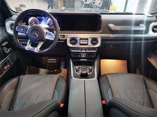 2021款奔驰G63内饰方面保留了新G500的整体设计,除配色差异外,新车还换装了全新造型的平底式AMG运动方向盘,其两侧配以打孔皮质包裹,下部镀铬装饰的造型也与新G500明显不同,看上去十分战斗。