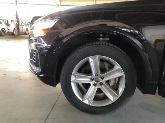 20款奥迪Q8 (配置|询价)的车身侧面不像同级德系竞品那般过于注重溜背感,两段式腰线配合内凹车门,勾勒出干劲有力的整体形象。奥迪Q8长宽高分别为4986/1995/1705mm,轴距2987mmmm。和奥迪Q7 (配置|询价)相比,奥迪Q8车长缩短了100mm,车高降低了11mm,而轴距也缩减了14mm。虽然尺寸变化不大,但明显营造了不同的风格。