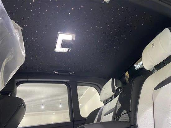 21款限量版库里南 (配置|询价) Badge车型最具辨识度的特征——欢庆女神的塑像变成了通体黑色。车头、侧翼、后进气道处的双R标志变成了黑底银字,前格栅边框、车窗边框、行李厢把手、行李厢下沿饰条、下进风口以及排气管等均变为黑色。格栅中间的竖杆是黑色,但每一根都经过打磨抛光,变得格外动感。