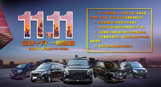 1:双十一限时限量,11台特价车型,惊喜来袭,新威霆 (配置|询价),巴博斯,圣母峰,罗伦士钻石之冠最高直降30万
