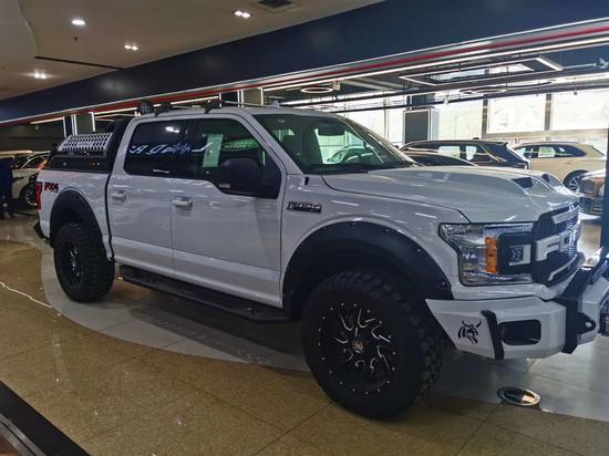 全新福特猛禽F150方方正正的前大灯与前保险杠造就了完美的车头造型与比例,进气格栅采用蜂窝状网格设计,并配以雕刻式的福特品牌标识。其前保险杠相当硬朗,且保险杠下方配备金属护板,以应对极端路况环境。整体的车架由高强度钢冲压而成,这样不但提高了车身的耐用性,更对乘客在安全方面有了进一步的保证。