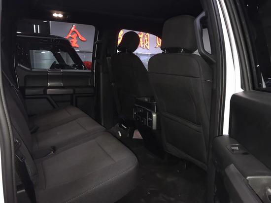 新款F150它的表面颇具动感,内饰奢华,配置富厚,同时兼具跑车的动力机能、越野车的全地形制霸本领和豪华轿车的乘坐恬静性,并且它的改装空间也很大。车内配备标准独特的皮革和布艺装饰的座椅,驾驶员侧的电动十向调节。这些座椅同时具备记忆功能。中央控制区搭配了触控式显示屏,其下方则是多媒体控制区及空调面板,采用旋钮+物理按键的组合。中控功能区域可分为三个小控制区,最上端为音响控制及导航控制,中间为收音机调节控制,最低端为空调及座椅加热控制。在内部空间的庞大基础上,福特也提供了非常具有舒适性与服务性的内饰配置。另外,新车还配备了一块大尺寸的全景天窗。