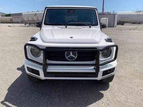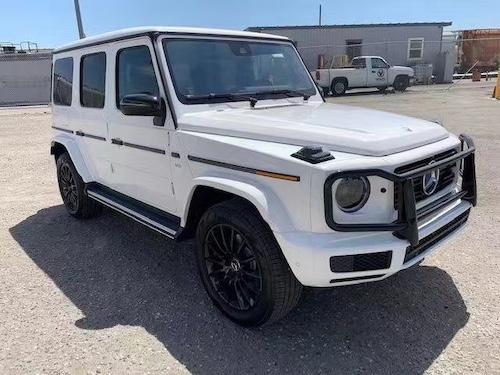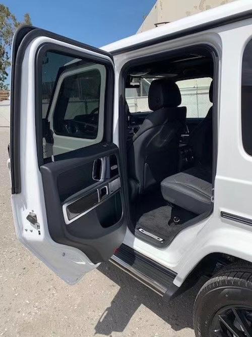 20款奔驰G500黑曜配置:20寸多辐轮,4.0T,V8,9速,天窗,前排真皮座椅通风加热按摩,后座椅加热,全液晶仪表,几何多光束大灯,LED日行灯,64色氛围灯,自动空调,柏林之声音响,三把差速锁,前后电眼,雷达测距,并道辅助,脚踏,后视镜电动折叠,多功能方向盘(蓝牙,定速巡航,换挡拨片)360°环车影像,暗夜套件(熏黑大灯、前转向灯、后备箱罩等)金属纤维内饰。
