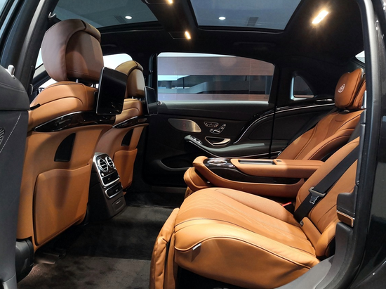 20款迈巴赫S450典藏版配有专属典藏组件,彰显大家风范面向中国地区的专属装备组合,为不凡品味而生。沉稳大气的designo摩卡黑色金属漆面和全新20英寸多辐轻合金车轮,初见便觉其优雅尊崇。甫启车门,可看到Nappa真皮浅棕色内饰及迈巴赫logo刺绣头枕;更有带迈巴赫logo的环境照明投影及刺绣脚垫一同迎接您登车。利用LED技术在打开的车门旁边投射品牌标识,可在黑暗中保证进出便捷且营造夺目亮点;优雅的designo脚垫,使车内氛围更为惬意。愉悦旅程,从选择梅赛德斯-迈巴赫S级轿车那刻便已开启。