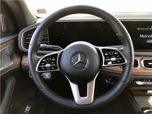 内饰配了实木/皮革组合的多功能方向盘和带有多种颜色及亮度调节的环境氛围照明系统。车内为三排(7座)设计,所有座椅均由真皮打造,内饰还将有更多个性配色可供车主选择,车内驾驶舱的多媒体液晶显露屏改成悬浮式造型,并且用全新造型的三辐式方向盘,筹划更加动感的奔驰GLS450,强劲的动力性能,尽显轩昂大气风采。