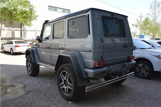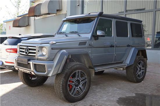 奔驰G500 (配置|询价)4×4是一部纯粹的全地形越野车,标志性的三肋镀铬格栅,复古的设计已成为一个时代的象征。彰显出十足的越野味道。奔驰G5004×4车头部份特别换上了碳纤维材质的单横栅式水箱护罩,并在两侧进气孔下方则追加了LED昼型灯,展现出更为华丽的车头造型。搭配车身大型轮拱同样碳纤维材质的设定,并刻意透出半截碳纤维材质的迷人纹路,让奔驰G5004×4的外观更显凶悍。