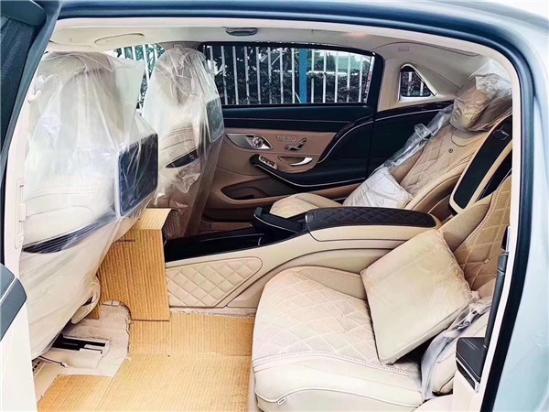 20款迈巴赫S680虽然在尾部和奔驰S级轿车并无太大差异,但却比奔驰S级长305mm,车长和轴距甚至大于宾利飞驰和劳斯莱斯古斯特。像飞机上的商务舱一样,迈巴赫的后排座椅通过抬高顶部增加头部空间;特殊的密封材料保障行车中的安静;在两个后排座椅的中间嵌入了中控台控制面板;全景天窗可以让自然光照射进来,如果不想让行人窥探车内,只要按下相应按键即可。2019款奔驰迈巴赫S680配备了头等舱级后排独立座椅、带V12标志的天鹅绒脚垫、后排电话装置、后排折叠桌、冷藏箱、互联网功能、分屏显示系统、电视信号接收器、触摸板和Burmester(柏林之声)顶级3D环绕立体声音响系统