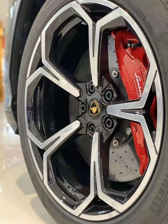 兰博Urus (配置|询价)黑色金属漆、22轮、红色卡钳、全景天窗、双色真皮(黑/红)缝合选项、头枕上有兰博基尼盾、3D BO音响、越野模式、