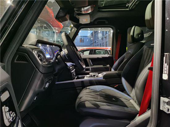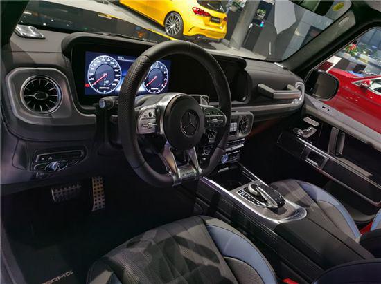 20款奔驰G63新车内部采用了高档地毯、钢琴黑饰条和皮革座椅,营造了一个十分豪华的内饰氛围。20款奔驰G63豪华精致的真皮包覆提供了足够的舒适性和支撑性,通风和加热功能让乘客免受高温和寒冷的煎熬。中控台多处均采用碳纤维材料覆盖,带彩色TFT显示屏的AMG仪表盘、AMG主菜单和单独的挡位显示器以及采用白色照明的AMG门槛。名贵的选材及精湛的内装令人拍案叫绝。