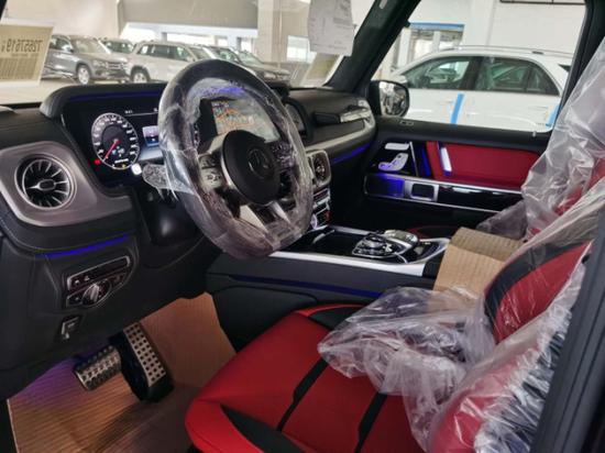 奔驰G63豪华精致的真皮包覆提供了足够的舒适性和支撑性,通风和加热功能让乘客免受高温和寒冷的煎熬。中控台多处均采用碳纤维材料覆盖,带彩色TFT显示屏的AMG仪表盘、AMG主菜单和单独的挡位显示器以及采用白色照明的AMG门槛。名贵的选材及精湛的内装令人拍案叫绝。