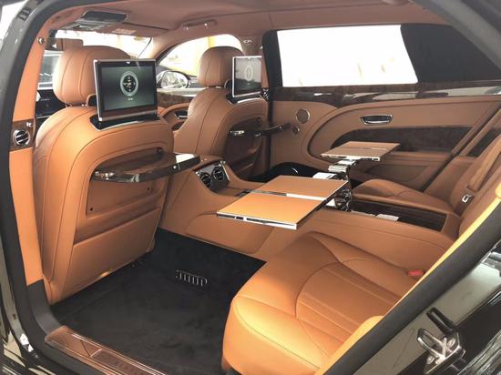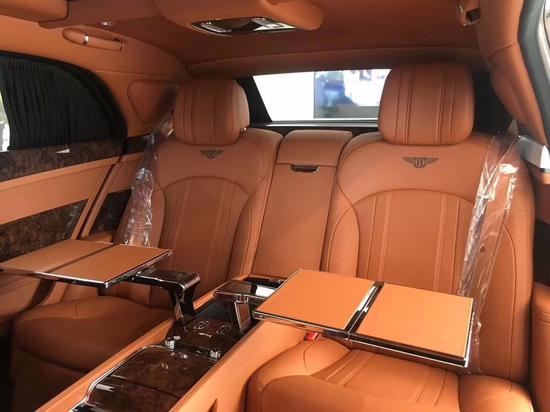 配置: 刺绣宾利徽章头枕,穆勒包,舒适包,娱乐包带地图,优选包, 穆勒LED迎宾灯,前舱大型玻璃天窗,暗色石楠树实木饰板,左右照明式可折叠化妆镜和后侧化妆镜饰面环绕,后排小冰箱带宾利水晶玻璃香槟杯,ACC定速巡航,宾利GPS追踪系统,角落侧视摄像头,数字电视和电台信