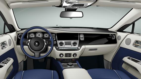 内饰方面,各种珍贵实木和皮质搭配,纯手工制作,精细程度那是没的说,整体的风格还是劳斯莱斯一贯的家族风格,大气奢华有内涵,抬头一望,星空顶,我们想象一下,带着心爱的人,找一个僻静的地方,关闭车灯,一起欣赏星空顶,并且劳斯莱斯的隔音是一流的。