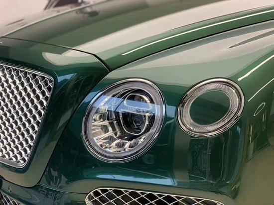 全新改款后的宾利添越 (配置|询价),车头的进气格栅尺寸更大也更竖直,更接近宾利经典轿车的设计风格,四个椭圆形大灯都变成了发光设计,而不是老款的大灯清洗装置,改款后的宾利添越采用宾利最新的钻石切割LED矩阵式大灯,炫彩夺目。