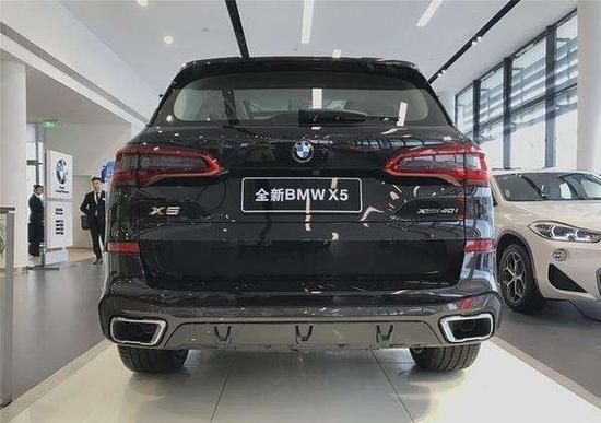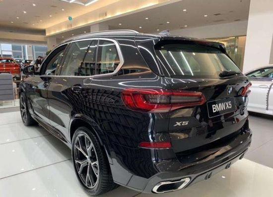2020款新一代宝马X5尾部造型立体感更强,采用悬浮式车顶设计,还配备了鲨鱼鳍天线,尾灯采用双红色灯带设计,采用双边单出排气管设计,后保险杠采用白色包裹,设计感更好。配备LED尾灯。配备22英寸铝合金轮毂,采用双辐式设计。