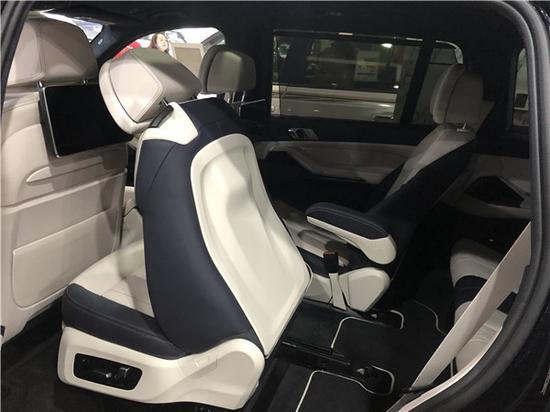 新款宝马X7六座版车型第二排为两个独立座椅且带有电动调节功能(7座车型第二排还支持前后14.5cm的滑动调节),上方配备两个头枕,内侧配有座椅扶手,大幅提升了乘坐舒适性。