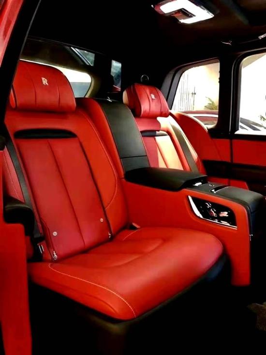 斯莱斯库里南的内饰换上了高科技的裸织工艺制成的材料,同时增加了全新的色彩,亮红色的全真皮装饰。另外在后排座椅扶手上,发光脚垫上和时钟边框上都有个性化“无限符号”,大幅提升了整车的极致豪华感。