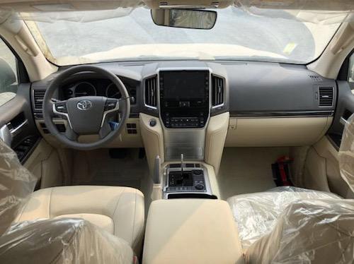 丰田酷路泽5700整个操控区域色调为深色系,仪表盘、方向盘和排挡等位置均配以桃木装点,尽显豪华质感。不但具有DVD导航,这款车的倒车影像还可以显示在内后视镜上;中央扶手箱还装备了冷藏箱,这些都与中规版车型有所不同。