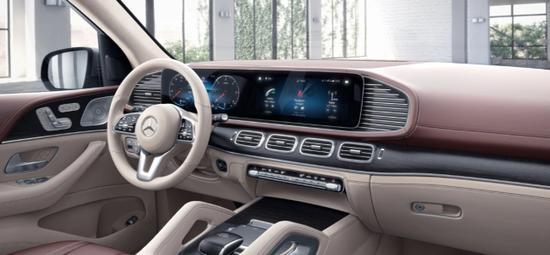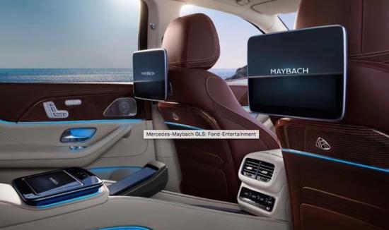 奔驰迈巴赫GLS600使用家族最新的设计语言,带有一体式大屏、氛围灯等配置,做工极其 考究,豪华感扑面而来。方向盘、中控台等处都使用了实木、真皮等材质,触感、观感都无可挑剔。同时,新车还配备了该车型专属的64色氛围灯、名为“NO.8 mood”香氛系统和Burmester品牌高端3D环绕音响系统。
