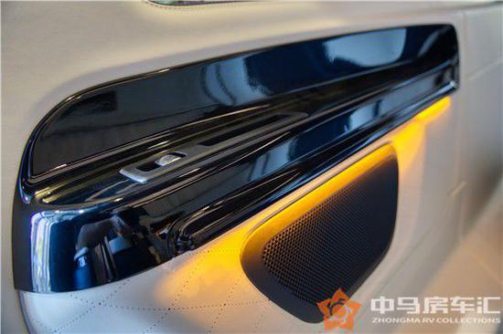 这款国六奔驰威霆商务车车顶是采用新款样式,和座椅同色搭配,设计上也很有科技感,迎宾的时候非常有Feel。氛围灯、脚踏、阅读灯、19寸液晶吸顶TV、全车隐私窗帘等细节装饰升级,让此款奔驰mpv表现的更为体贴细致。