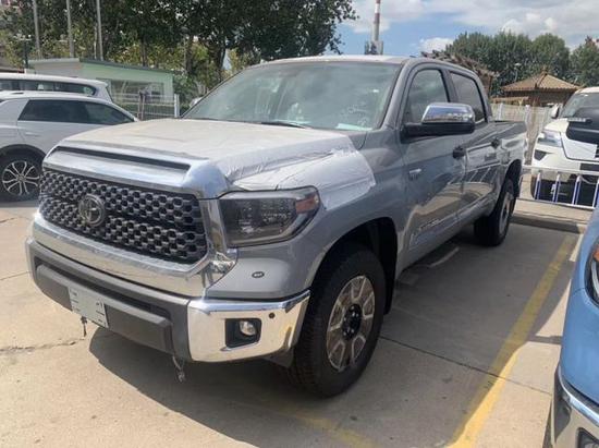 丰田坦途是丰田旗下众多车系中最大型号的皮卡,车身与丰田红杉极为相似,底盘悬挂同出一辙。 20款丰田坦途整体轮廓明显具有美国式汽车独特的风格。前脸造型上更加硬朗,粗壮的横幅格栅展现出极其坚实的力量感,宽大硬朗的车身,粗犷有力,凸显美国车的风范,前脸明显外张的挡泥板以及前突的坚固格栅尽现强悍风格。