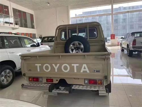 丰田LC79长轴五门版皮卡。新车具有强烈的运动感,突出的前包围抬高的底盘,富有肌肉感的前脸,都宣扬着这款四驱皮卡的独特魅力。车身侧面“Land Cruiser”就是一款金字招,证明了他的身份是一款名副其实的越野车,后排货箱,同时证明了它是一台皮卡,兼顾越野与载货,这样设计足可以看到它耐用结实这一特点。